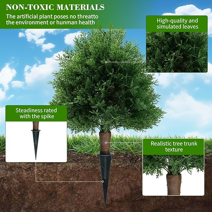 • Easy Setup with Reinforced Ground Spike: Designed with a convenient ground spike, this UV-resistant artificial cypress topiary is incredibly easy to set up. Simply place it in soil, a planter, or a decorative pot to instantly enhance your space with greenery that looks fresh year-round.