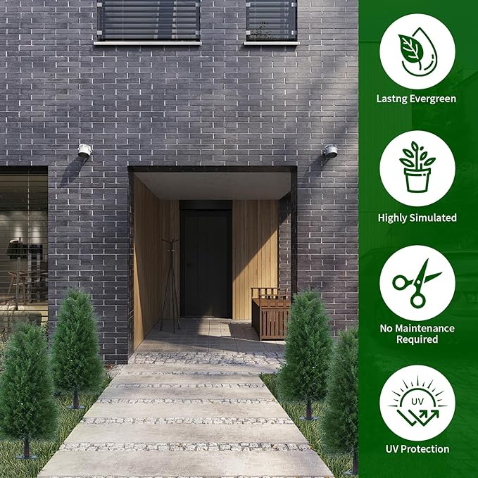 • Easy Setup with Reinforced Ground Spike: Designed with a convenient ground spike, this UV-resistant artificial cypress topiary is incredibly easy to set up. Simply place it in soil, a planter, or a decorative pot to instantly enhance your space with greenery that looks fresh year-round.