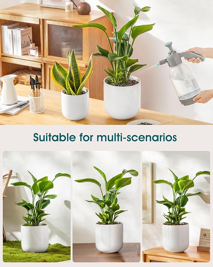 • 🌿High-Quality & Long-Lasting Ceramic Build – Crafted from high-fired ceramic, these planters offer exceptional durability and resistance to wear. They withstand strong sunlight and harsh winters without fading, cracking, peeling, or frosting. Designed to combine beauty with strength, they bring lasting elegance to your indoor garden. The sturdy build resists daily handling, watering, and temperature changes—making them a reliable and stylish choice for any space.