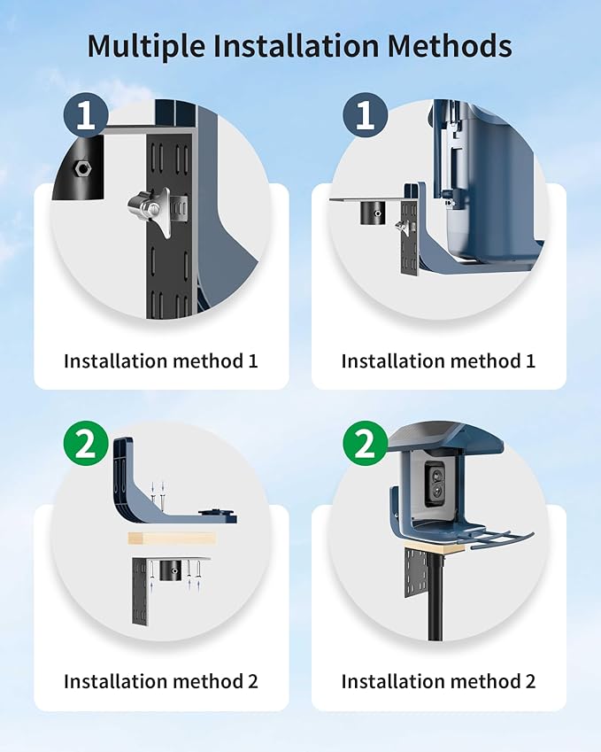 • 【Easy Installation】This bird feeding station reaches a total height of 60 inches and comes with 6.5-inch 5-prong base, 2 x connecting pole, and an L-shaped plate. The slip-in connection method allows for easy assembly, similar to stacking building blocks. Installation typically takes 20 to 40 minutes and no need extra tools. This user-friendly design ensures that anyone, from young enthusiasts to seniors, can set it up effortlessly.