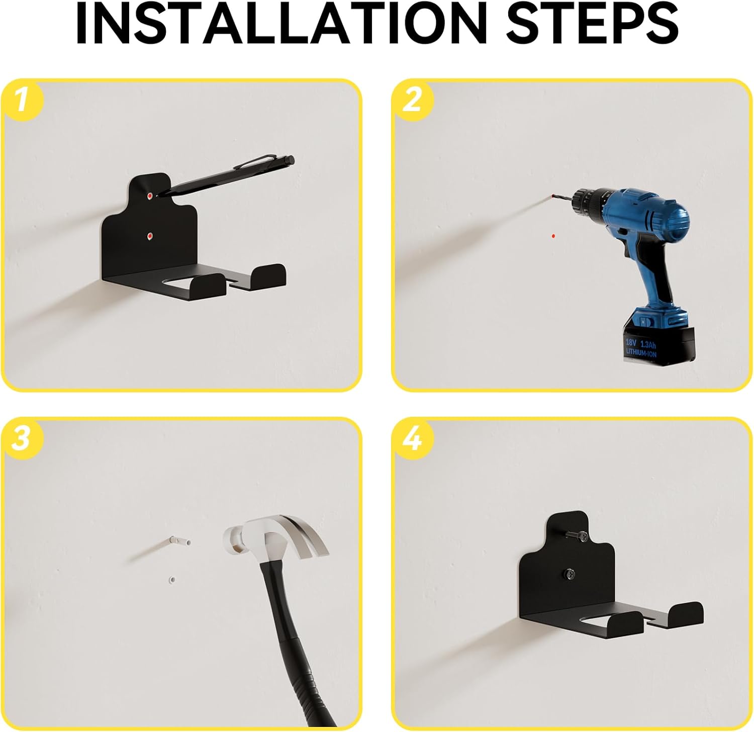 • Multi-Purpose: Garden power tool hanger for multiuse can hold up to various tools in your garage or yard, like shovels rakes, brooms, mops, drills, sports equipment, hoses, cables, cord and so on