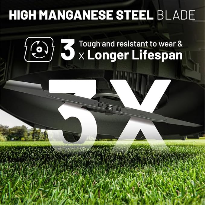 • 6-Height Adjust: The cordless lawn mower with 6 position height adjustment from 0.98 inches to 2.95 inches. This flexibility accommodates various grass types and seasonal needs, ensuring a perfectly manicured lawn year-round.