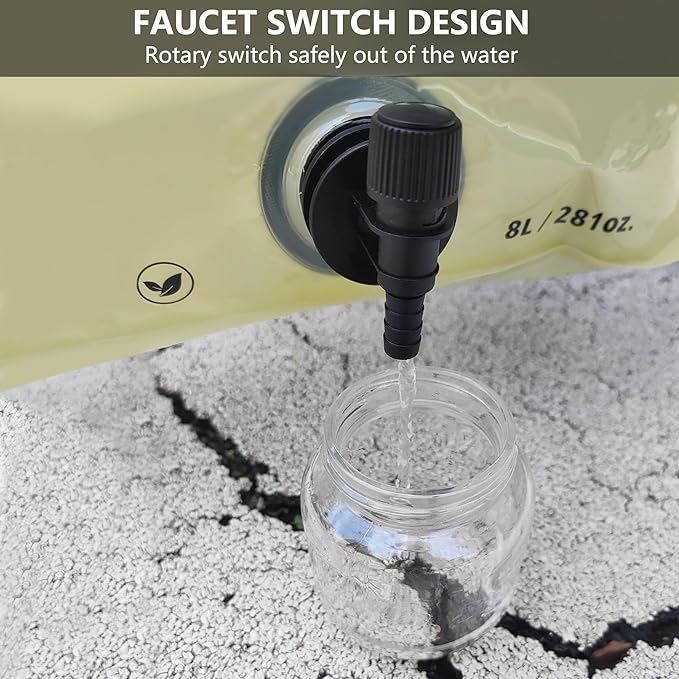 Collapsible 8L Water Storage Bag, BPA-Free Portable Folding Water Jug with Adjustable Faucet, Leakproof Emergency Water Bag for Camping, Hiking, Riding, Outdoor Sport (BEIGE&GREEN, 4)