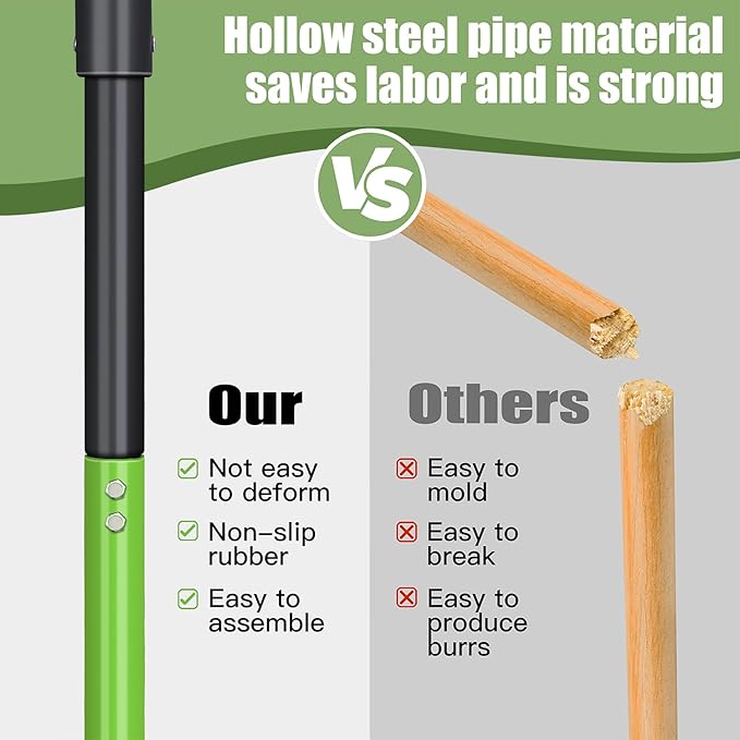• 【Strengthen Handle and Fork Head】The handle and fork head connection of the pitchforks for gardening is upgraded to a double-screw design, which makes the pitch fork more stable to use and will not shake. Equipped with high-strength steel handles will not break