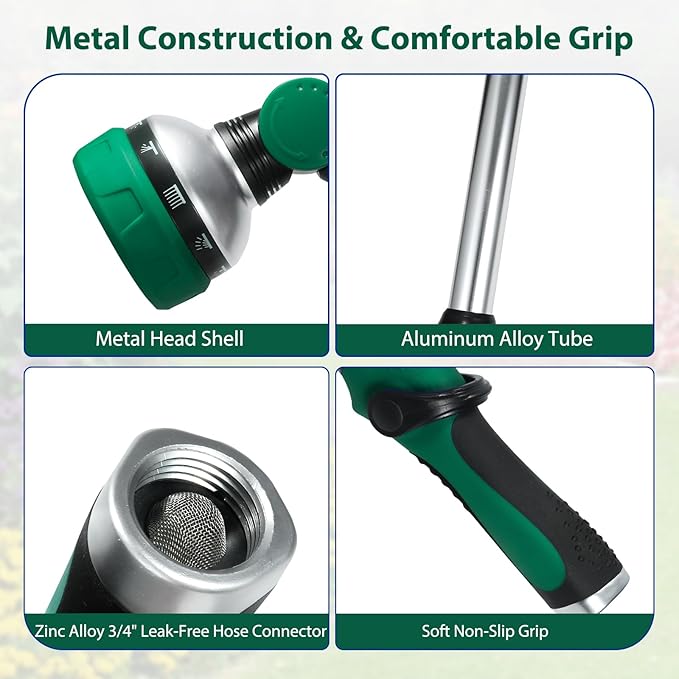 • 【10 Versatile Spray Patterns】-- Choose from Shower, Mist, Flat, Full, Cone, Center, Jet, Angle, 1/4 Vert, and 1/2 Vert modes. Adjustable flow control for precise watering, perfect for delicate plants and seedlings