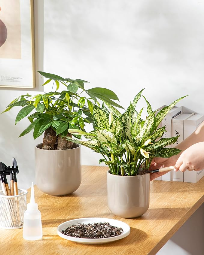 • 🎁Heartwarming Gift – Ideal for housewarmings, birthdays, holidays. Surprise your loved ones with a thoughtful and elegant touch of greenery. This ceramic planter set isn't just functional—it's a heartfelt way to bring calm, beauty, and life into any space.