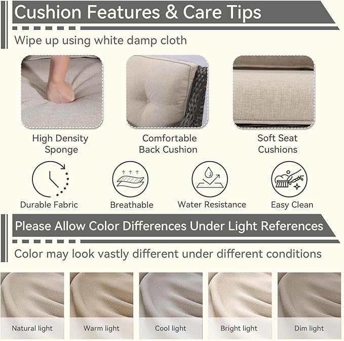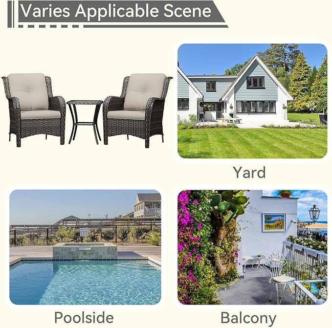 • [Sturdy Frame] The patio set is built over a powder-coated rustproof metal steel frame with a reinforced. Ensure impact and pressure resistance of the product