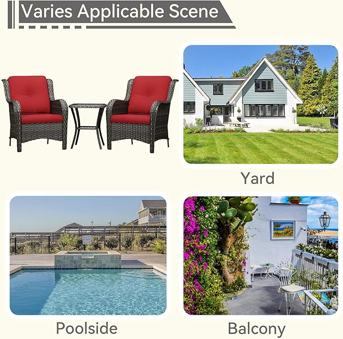 • [Sturdy Frame] The patio set is built over a powder-coated rustproof metal steel frame with a reinforced. Ensure impact and pressure resistance of the product