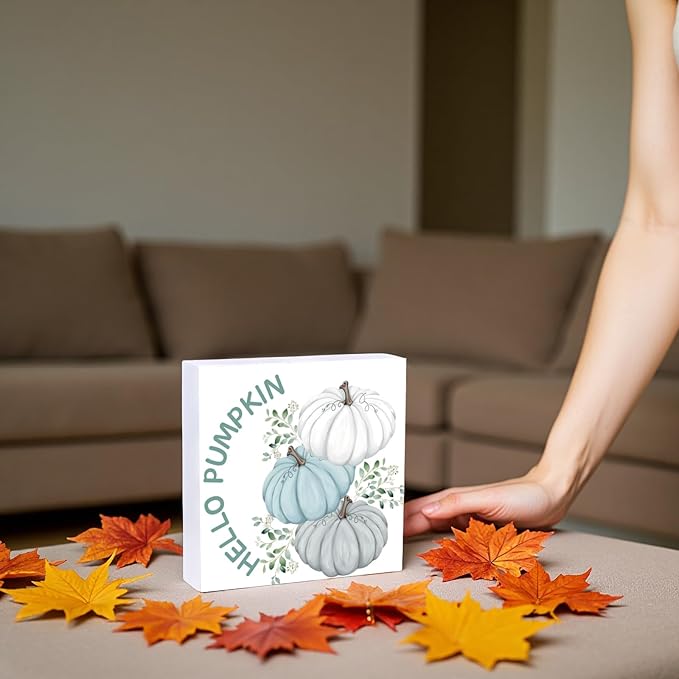Fall Decorations for Home Fall Decor Home Room Hello Pumpkin Table Wood Box Sign Rustic Wooden Shelf Desk Office Decor Season Sign House Warming Gifts 5.9 x 5.9 Inch
