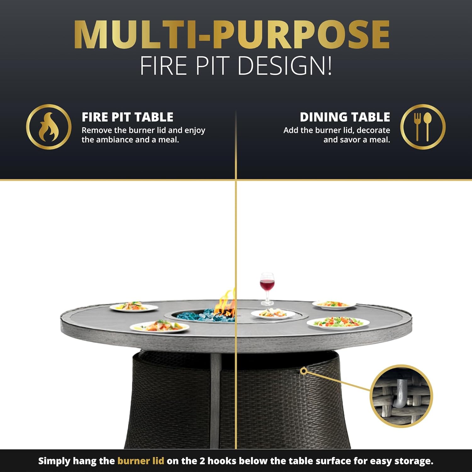• 【CSA-Certified Safe Heating】Our 50,000 BTU propane fire pit table is CSA-certified for both residential and commercial use, providing smokeless, clean-burning heat. The innovative design includes a hidden pullout propane tank holder that keeps your space tidy, while the push-button ignition system ensures effortless operation. A safer, cleaner alternative to traditional wood-burning fire pits.