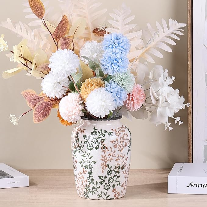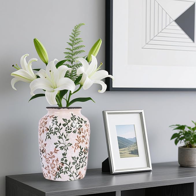 • Vintage floral vase: This floral print ceramic vase is designed in a vintage country style, inspired by antique flower pots, featuring delicate hand-painted floral patterns and enamel decorations, embellished with different bouquets against a rough background, giving it a warm feeling.