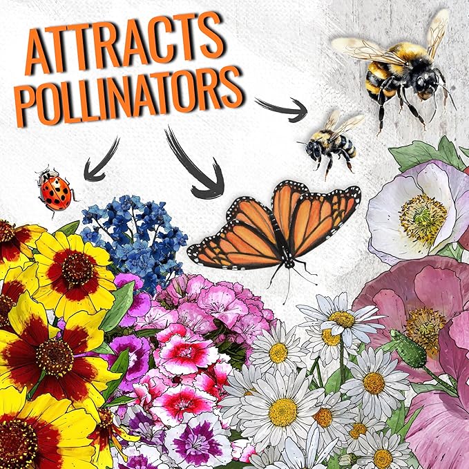 • Flower Seeds: Premium bulk package of wildflower seeds to establish a colorful garden filled with red flowers, orange flowers, yellow flowers, blue flowers, pink flowers, purple flowers and more!