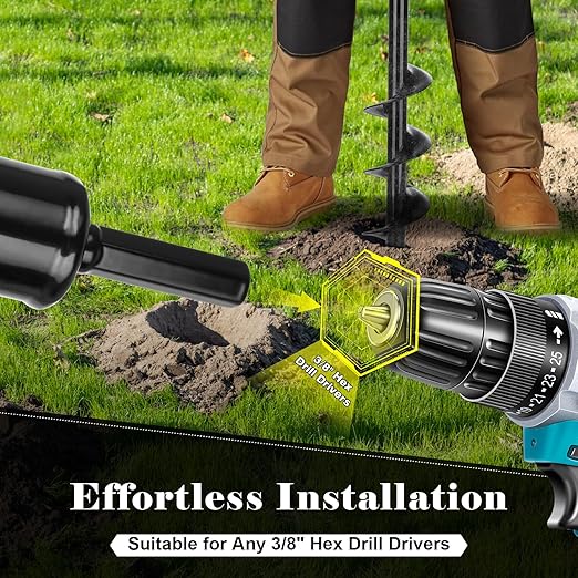 • Easy to Use:Just attach the drill auger to any standard 3/8" drill, and you're all set to start digging with ease. Add water to the soil prior to drilling for easier penetration. Enjoy happier planting and make your gardening experience more enjoyable than ever.
