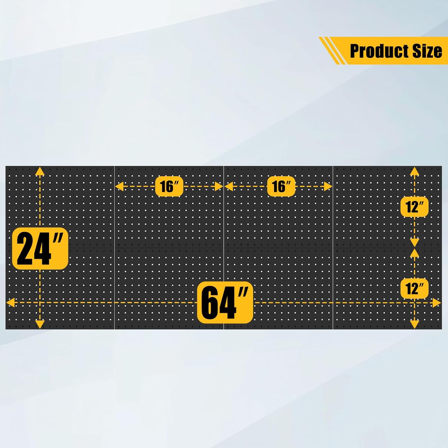 • Great for Tools Organization: This garage storage pegboard system can be DIY according to your storage needs. Each 16 x 12 inch pegboard with 1/4 inch holes, 8 pegboards can form a 48 x 32 / 64 x 24 pegboard wall. Suitable for organizing garage tools or garden tools and all kinds of tools. A nice choice for storing and holding your tools in kitchen, garage, utility room, basement or shed