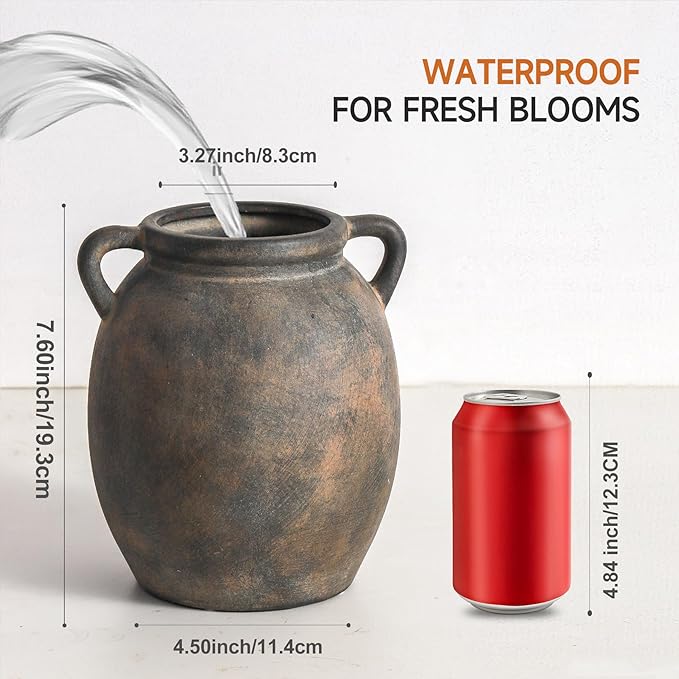 • 【Handcrafted Ceramic Artistry】Made of high-quality, 100% hand-painted ceramic with high-temperature firing, this vase combines durability with unique artistry. Its waterproof interior allows for fresh flowers, while the rustic terracotta finish adds timeless charm.