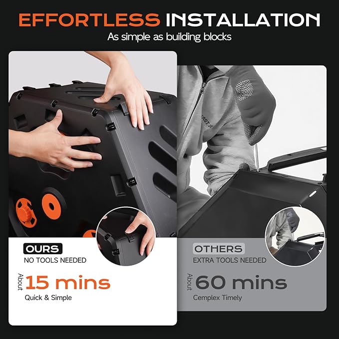 • 【Super-Fast Snap Assembly】 Say goodbye to complicated setups! TOP XIAN's 2025 single-chamber compost bin assembles in minutes. Effortlessly snap components together like sturdy blocks, no frustrating screws or wrenches. Perfect for beginners or anyone who values instant setup
