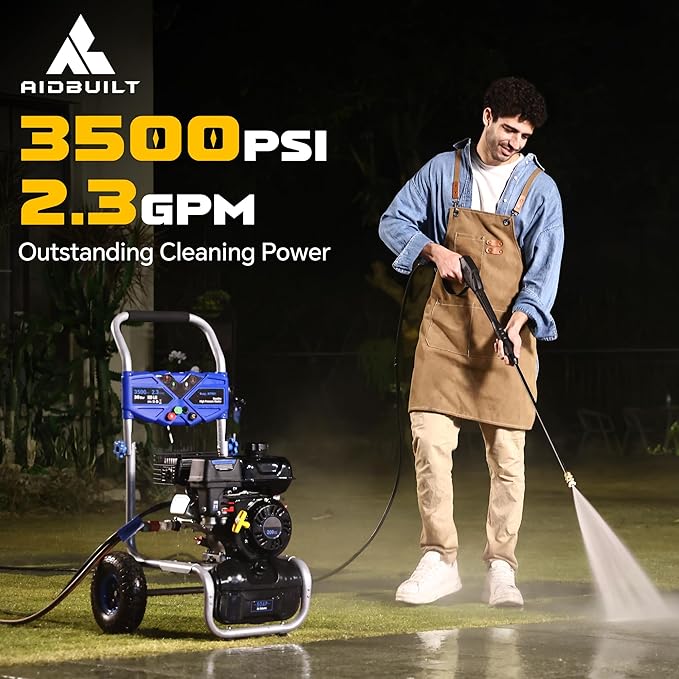 • EXCEPTIONAL CLEANING POWER: 3500 PSI and 2.3 GPM water flow deliver outstanding cleaning power, doubling the cleaning efficiency compared to standard gas pressure washers. This powerful performance is ideal for cleaning siding, driveways, houses, cars, RVs, paint prep, and more, making it an excellent choice for homeowners.