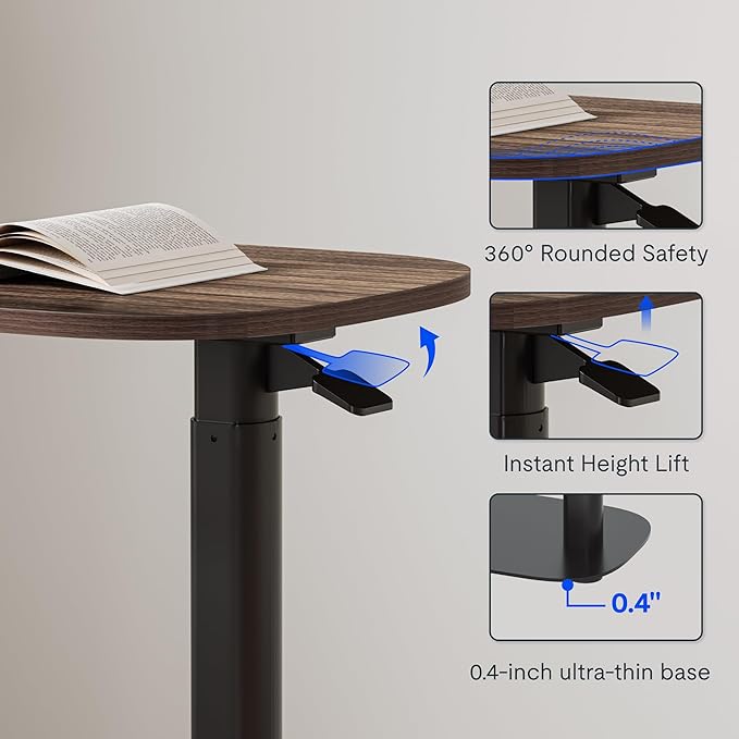 • One-Touch Height Adjustment with Gas Spring Lift (25.4"-41.6"):Effortlessly customize your C-Shaped Table from bedside to standing desk heights using the pneumatic lift system. The gas spring mechanism enables smooth one-handed operation – perfect as an overbed table for patients, an adjustable laptop desk, or a sofa-side snack table – all without bending or straining.
