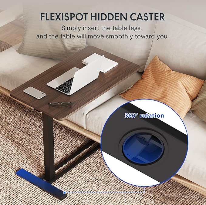 • 360° Smooth-Glide Mobility for Multi-Room Use:Four swivel wheels ensure seamless movement across floors, effortlessly rolling under beds, couches, or recliners as a space-saving over couch table. Transition from a hospital bed table to a living room TV tray or mobile end table with zero friction, ideal for quick room-to-room adjustments.