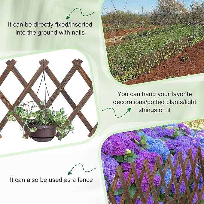 • [Installation] - Effortlessly enhance your garden aesthetic by hanging planters on the trellis or stringing LED lights to create a festive atmosphere on your walls or fences, providing both beauty and functionality to your space