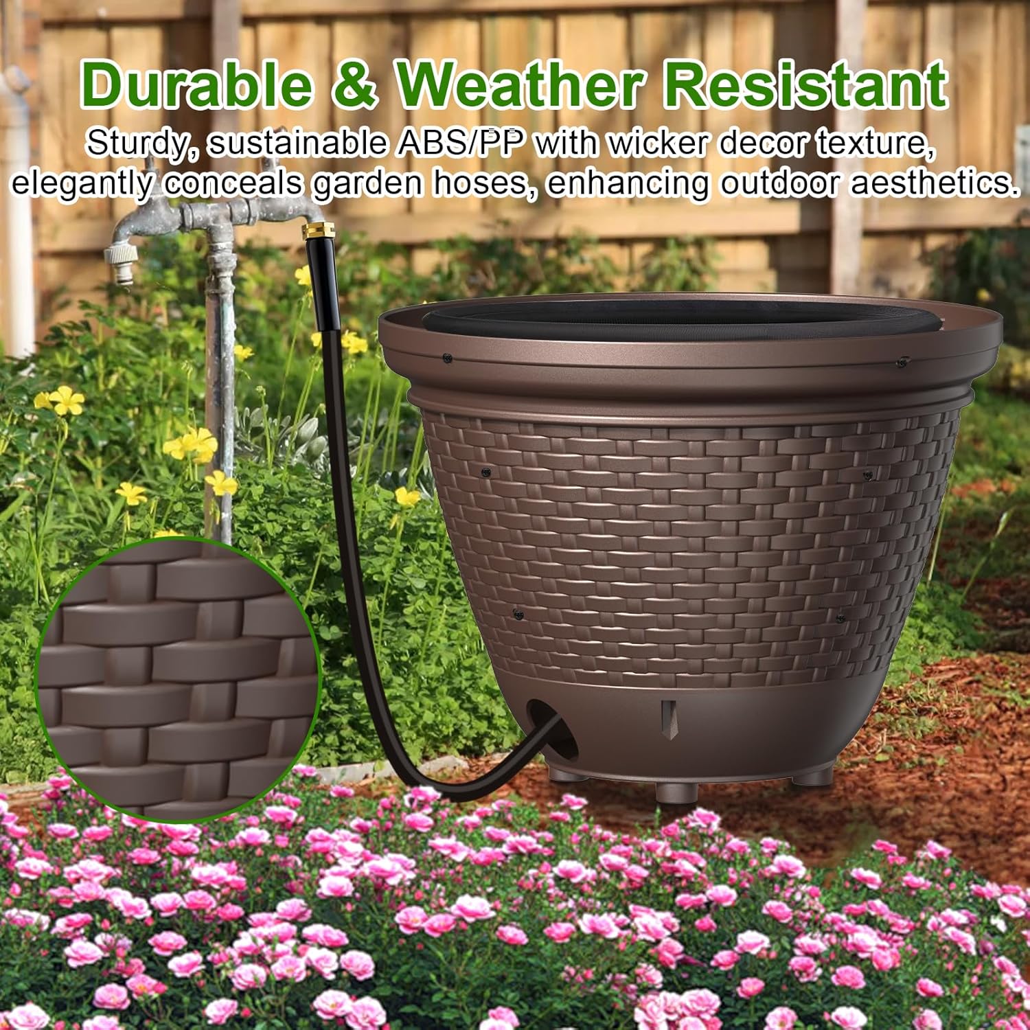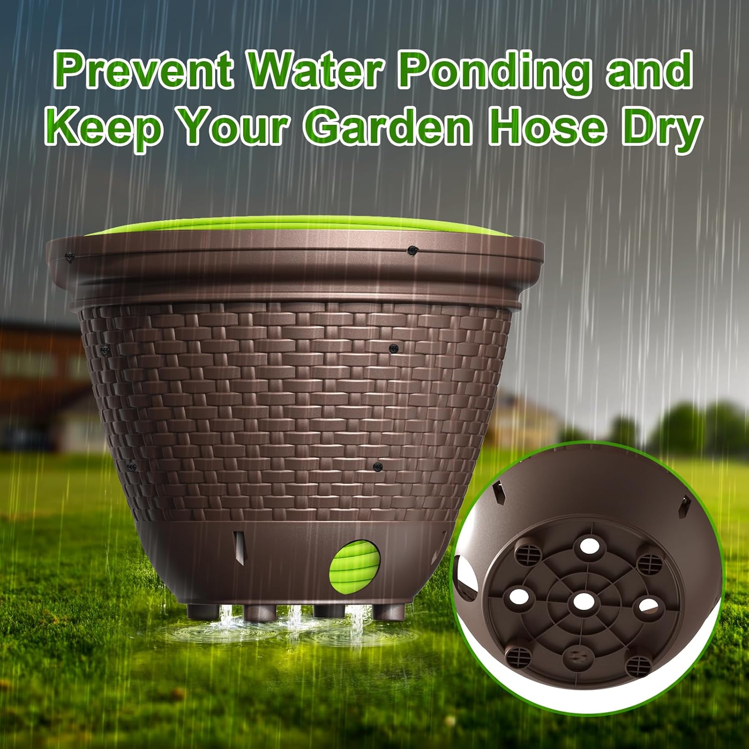 • 【Elegant & Decorative Hose Storage】: The Riokko garden hose holder features a stylish wicker-style design that seamlessly blends into your garden, patio, backyard, or garage. This decorative hose pot not only hides your hose but also enhances outdoor aesthetics with its natural charm. Perfect for storing 100 ft garden hoses while keeping your space tidy