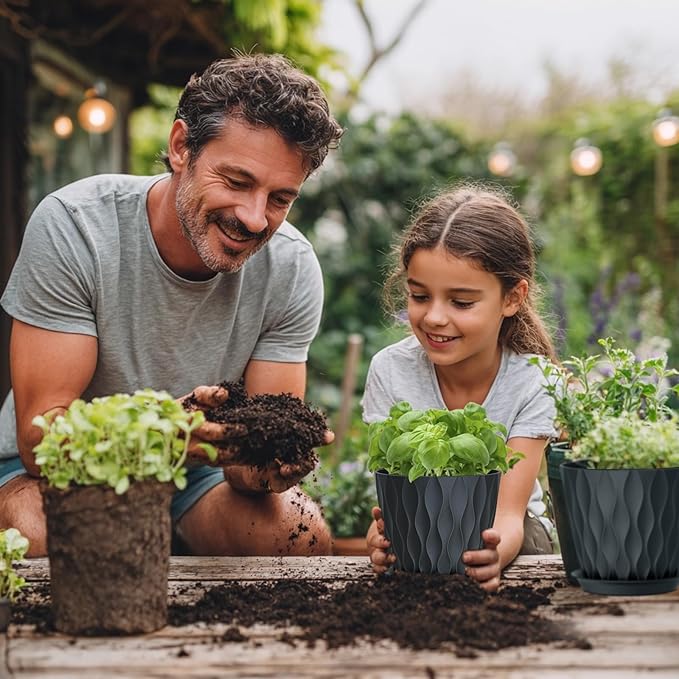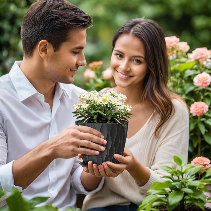 • 【Modern Wave Texture Design】With a simple modern aesthetic and a clean matte finish, this set of 5 flower pots features a 3D wave-like texture, adding a touch of elegance to any space. Perfect for starting seedlings, or home/office decor, these pots for plants are ideal for gardening