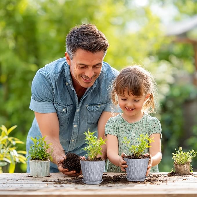 • 【Plant Pots with Drainage Holes and Trays】Small pots for plants features drainage holes that promote proper air circulation for roots, ensuring healthy growth and preventing waterlogging, small uniform holes prevent soil leakage. While the matching saucers catch excess water to keep surfaces clean and dry