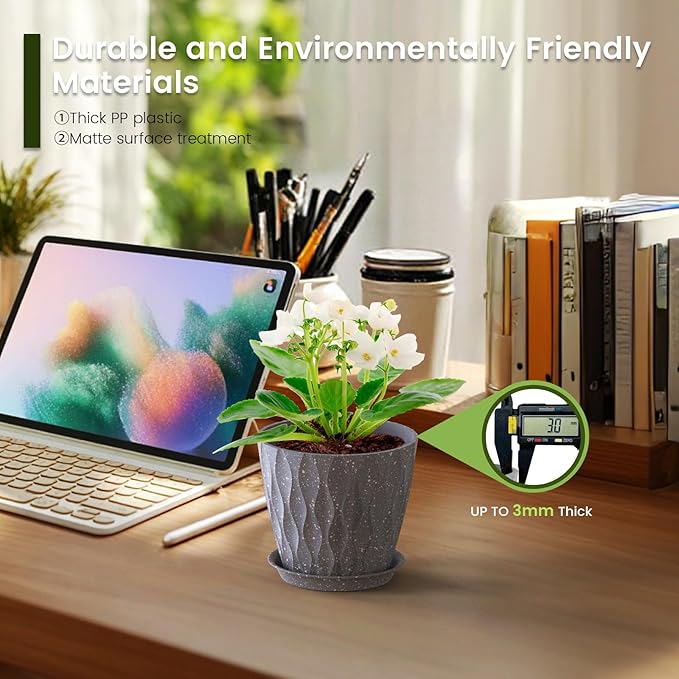 • 【Modern Wave Texture Design】With a simple modern aesthetic and a clean matte finish, this set of 6 small plant pots features a 3D wave-like texture, adding a touch of elegance to any space. Perfect for starting seedlings, or home/office decor, these pots for plants are ideal for gardening