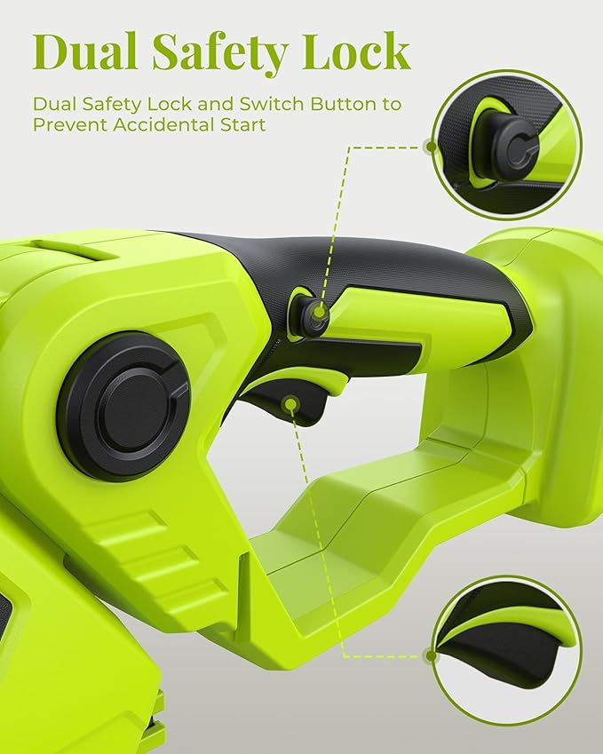 • Multiple Safety Protections: 1. safety lock to prevent accidental activation; 2. on/off switch to start the machine; 3. non-slip handle helps you to get a firm grip on the hedge trimmer