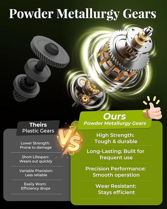 • 2-in-1 Cutter: This bush trimmer has a 5.3" wide grass blade and a 9" long hedge trimmer blade. The long blade( MAX clipping thickness 0.3'') is designed for trimming thin shoots on hedges, bushes, small trees, and ornaments. The short blade( MAX cutting width 4.8'') is designed for shearing grass, weeds, and edge sections of lawn. Thanks to the powder metallurgy gears, it ensures tough, durable strength and long-lasting using life