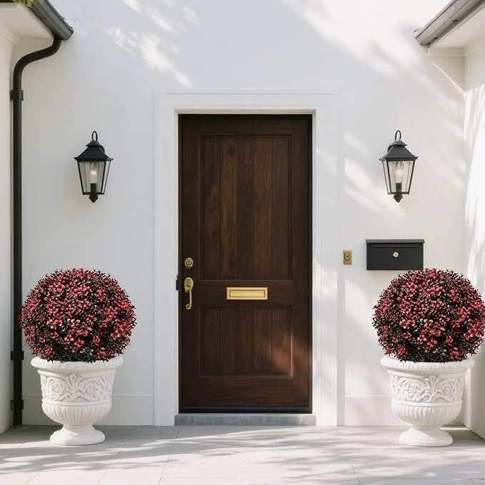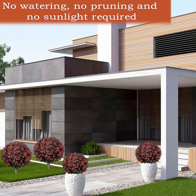 • 🌿Realistic Boxwood Topiary Ball Trees:made from high-quality materials for a natural look for year-round. Lifelike design:new red+green boxwood leaves like red flowers growing on the trees you planted.
