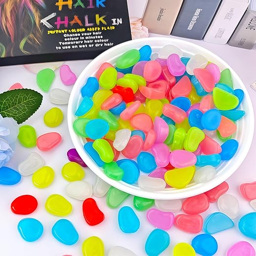 0.7LB 25-27mm Color Glowing Rocks for Driveway Glow in The Dark Rocks for Fish Tank Luminous Pebble Stones for Lawn Landscape Decor Garden Patio Aquarium Walkway