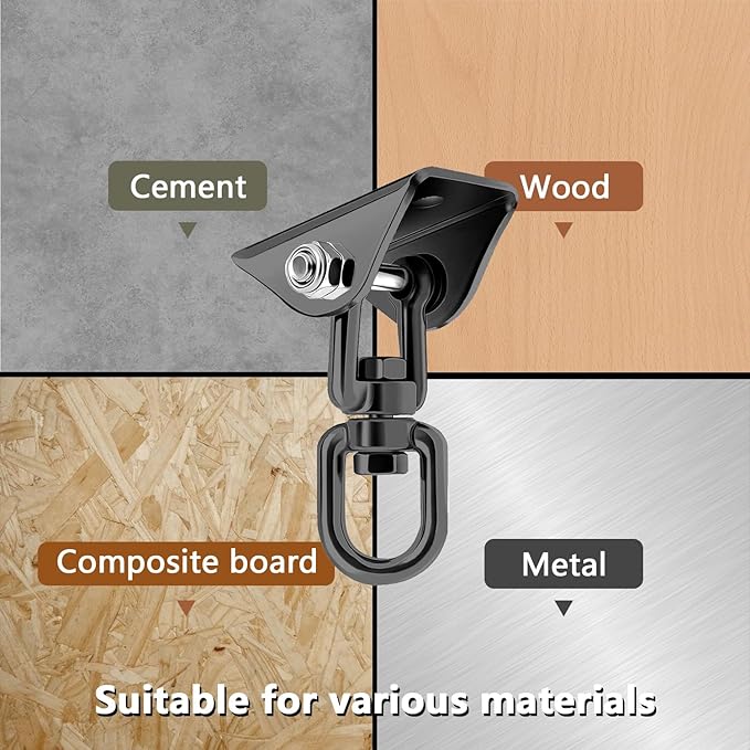 • Widely Used in Wood and Concrete: Our swing hardware provides 2 screws for wood and 2 expansion bolt for concrete. Heavy duty hammock hanging kit for ceiling, punching bag, porch swing, hammock, swing chair, ring, yoga swing, boxing equipment, hammocks, chairs, beds, baskets, furniture, swings, hammock hanging kit, hammock chair hanging kit, porch swing hanging kit, hanging chair hardware.