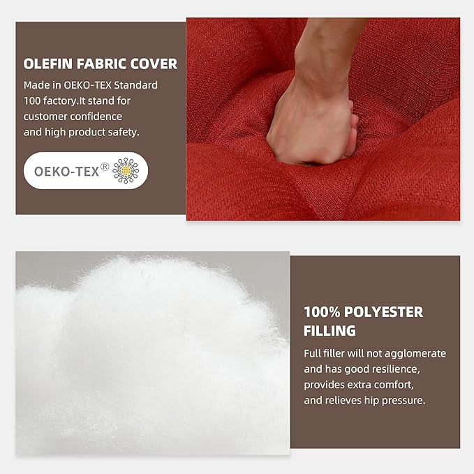 • Comfortable & Durable: RACE LEAF cushions are made of Olefin fabric cover and 100% polyester fiber filling. The cover fabric has been treated with solution-dyed to resist fading, light fastness can withstand up to 1,500 hours and still not fade. The filling is 100% polyester, will not agglomerate has good resilience, provides extra comfort, and relieves hip pressure