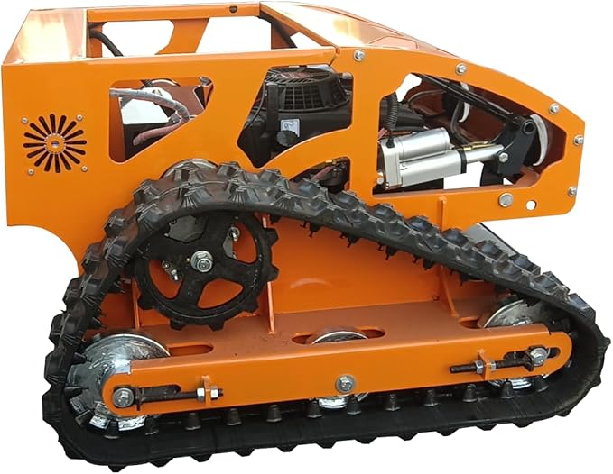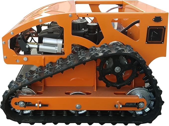 • 【45° slope for Tracked】:The 45-degree tilt capability allows the mower to operate efficiently on steep slopes, ensuring better coverage of hilly or uneven terrain. Tracks provide greater surface contact with the ground, and at a 45° incline, they offer better grip and balance compared to wheels, reducing the risk of slipping or tipping over.
