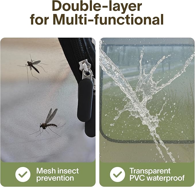 • All-Weather Ready: Built for all four seasons, this pop up tent shields you from rain, wind, and insects. Use the mosquito-proof mesh for breezy backyard lounging or rely on the waterproof PVC layer for storm protection—versatility meets durability.