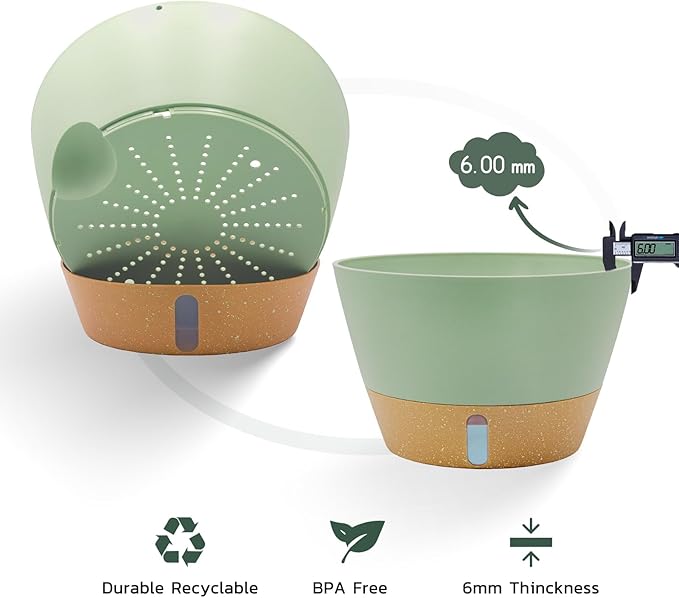 • 【Ventilation & Drainage】The easy-to-remove tray design simplifies cleaning and maintenance. The tray stores water for 7 days or more, and the mesh ventilation holes in the bottom of the self-watering pot ensure optimal aeration, providing plenty of breathing space for your plants