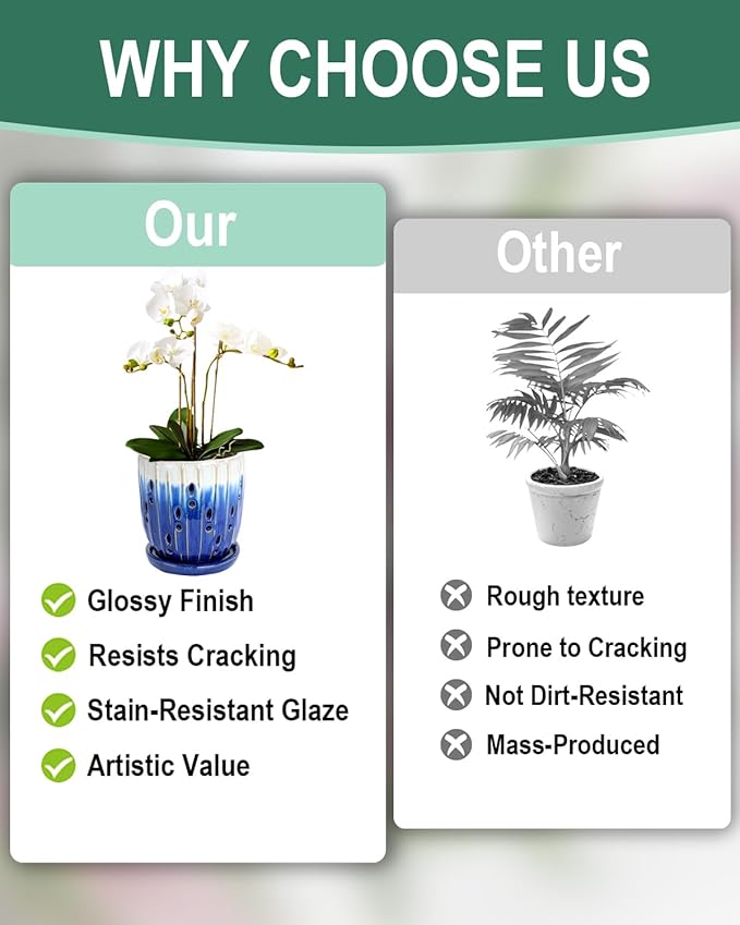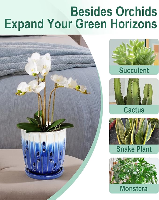 • 【Versatile and Durable】Orchid Pot with holes, this planter is ideal for orchids, succulents, cacti, ferns, and indoor/outdoor plants. The glazed finish boosts outdoor durability, while its sophisticated style elevates any setting