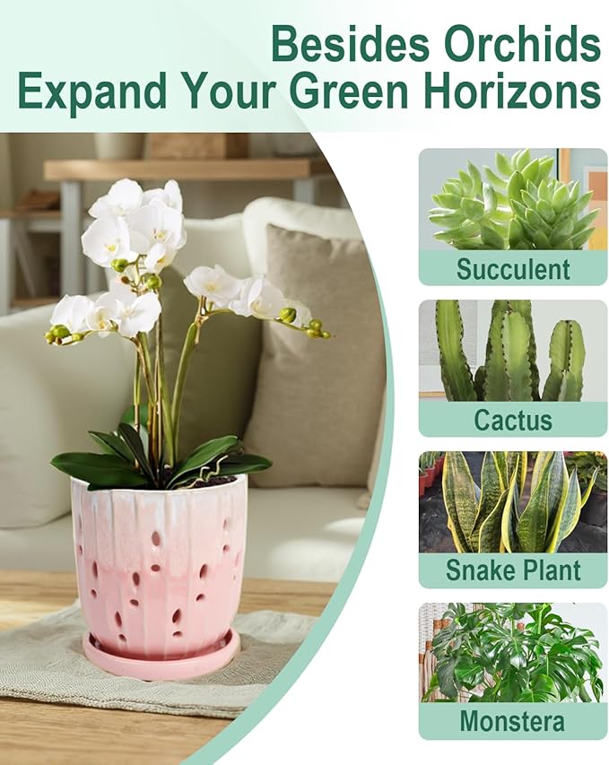 • 【Quality Ceramic Material】Crafted from premium high-fired ceramic, this orchid pot delivers lasting durability with a scratch-resistant glossy glaze that adds sophisticated elegance