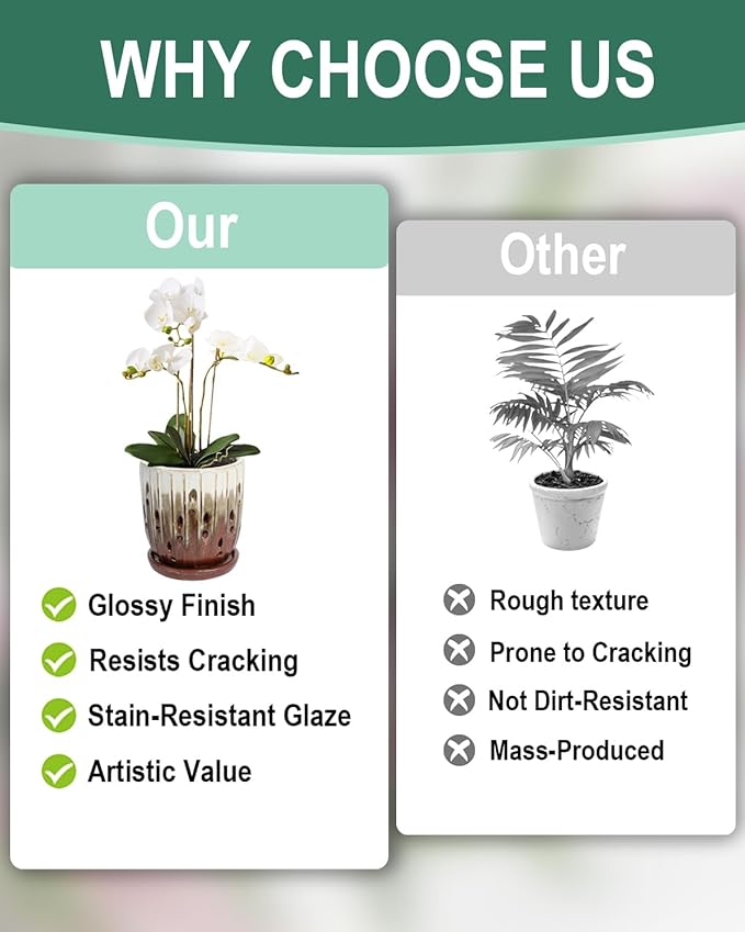 • 【Quality Ceramic Material】Crafted from premium high-fired ceramic, this orchid pot delivers lasting durability with a scratch-resistant glossy glaze that adds sophisticated elegance