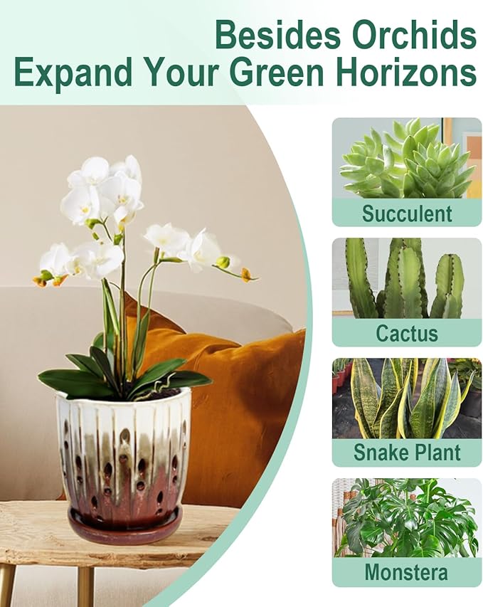 • 【Versatile and Durable】Orchid Pot with holes, this planter is ideal for orchids, succulents, cacti, ferns, and indoor/outdoor plants. The glazed finish boosts outdoor durability, while its sophisticated style elevates any setting