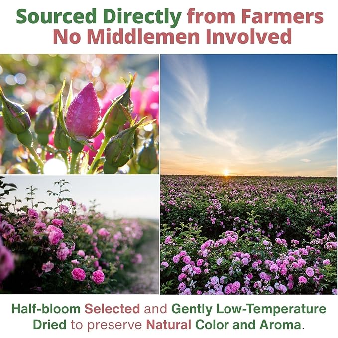 • 【Food-Grade & Edible】Premium dried rose petals edible—carefully selected and naturally dried. No additives, no artificial colors, caffeine-free, vegan. Perfect food grade rose petals for everyday kitchen and craft use