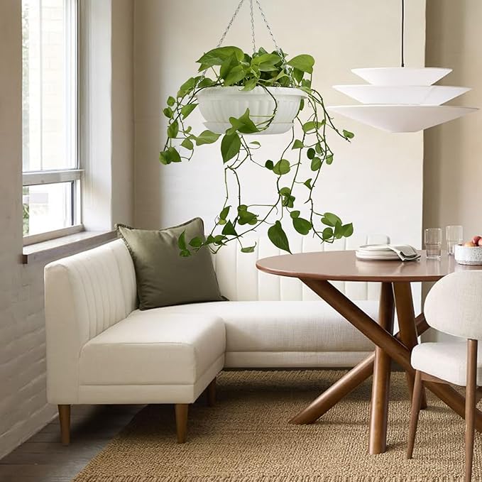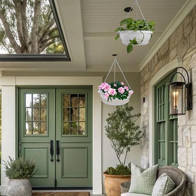 • Plant baskets are made of high quality plastic, light-weight. Coated metal chain, not easy to rust.