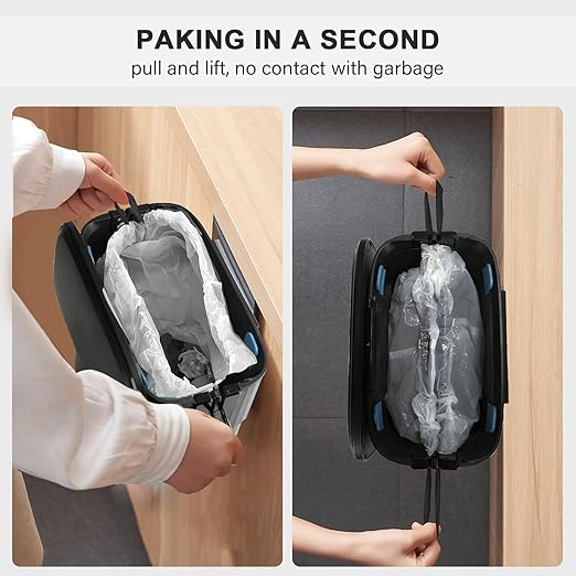 • Drawstring Design - The hanging garbage cans come with a convenient drawstring design that allows you to quickly pack garbage bags without getting your hands dirty, and the built-in spring makes it easy to pull the bags without tearing them.