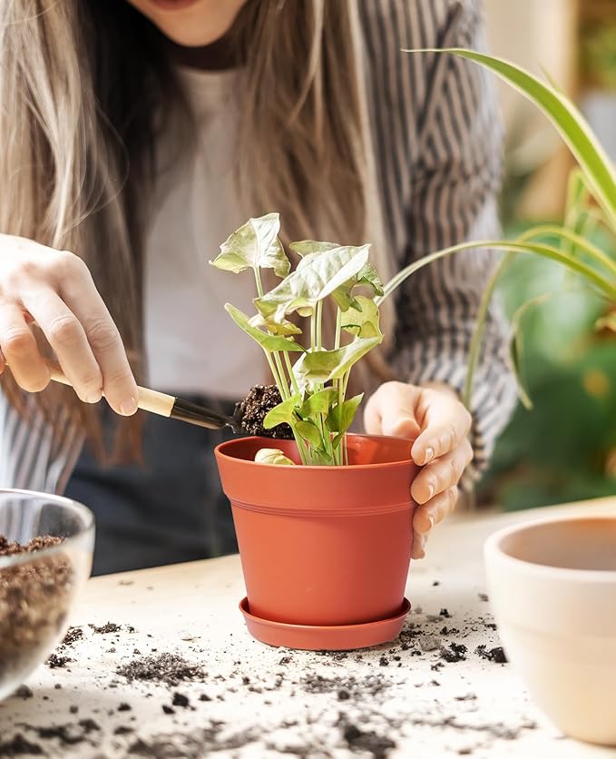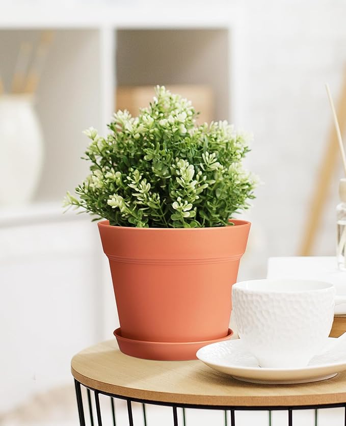 homenote Plant Pots,7.5 Inch Flower Pots for Plants Plastic Planters for Indoor with Multiple Drainage Holes and Trays, for All Home Garden Flowers Succulents,Outdoor(Terra Cotta,8 Pack)