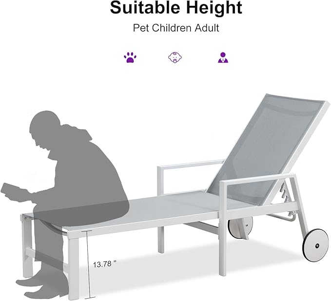 • Quick-Drying Material: This chaise lounge is made from high-quality textile fabric that won't fade even after prolonged exposure to water; It dries quickly when wet; offering excellent water repellency and breathability; and provides an exceptional touch and feel; Additionally, it has outstanding sun protection