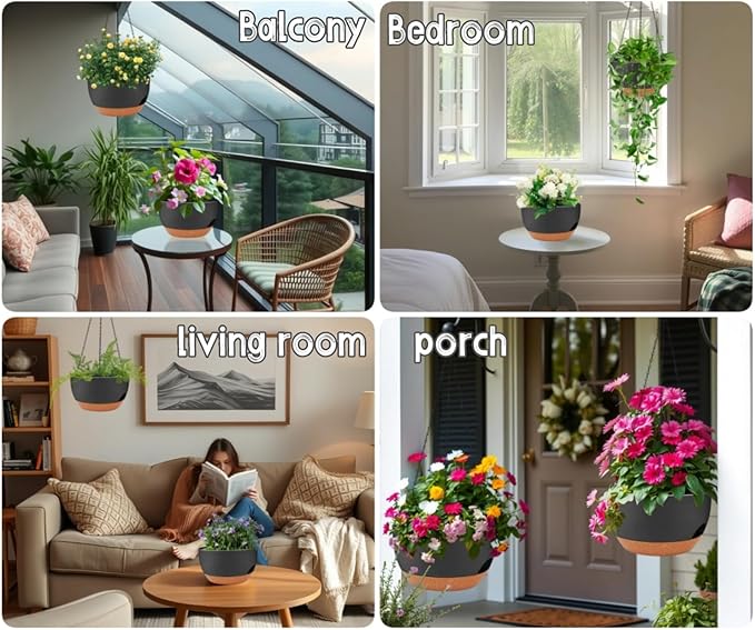 • ✅ 2 Large Self-Watering Planters: Double the value! Includes two 12-inch wide plastic hanging planters with built-in self-watering reservoirs to reduce the need for frequent watering and keep plants healthier.