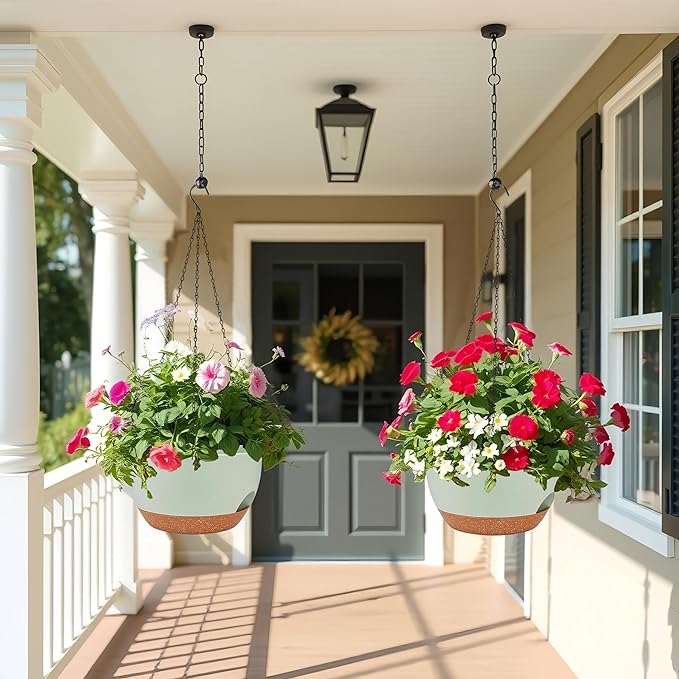 • ✅ 2 Large Self-Watering Planters: Double the value! Includes two 12-inch wide plastic hanging planters with built-in self-watering reservoirs to reduce the need for frequent watering and keep plants healthier.