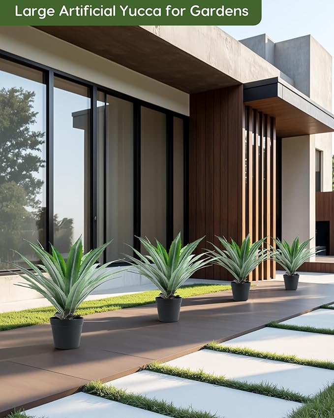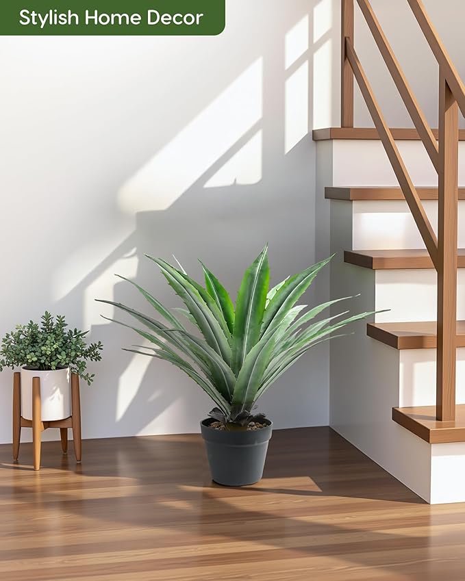 • Elevate Your Space with Lifelike Beauty: Immerse yourself in the natural allure of our 25*25*24 inches (L x W x H) large artificial agave plants and featuring 29 leaves. Crafted from high-quality PE material, every leaf embodies a lifelike realism that will mesmerize you, while the surface finish reflects light authentically for a truly natural look.