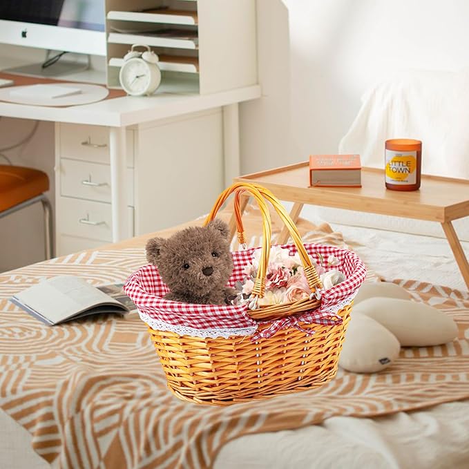 • 【Easy to Carry with Handle】 Equipped with a sturdy handle, this Willow Woven Picnic Basket with handle is easy to transport, making it the perfect companion for picnics, market shopping, or as a gift basket for any occasion.